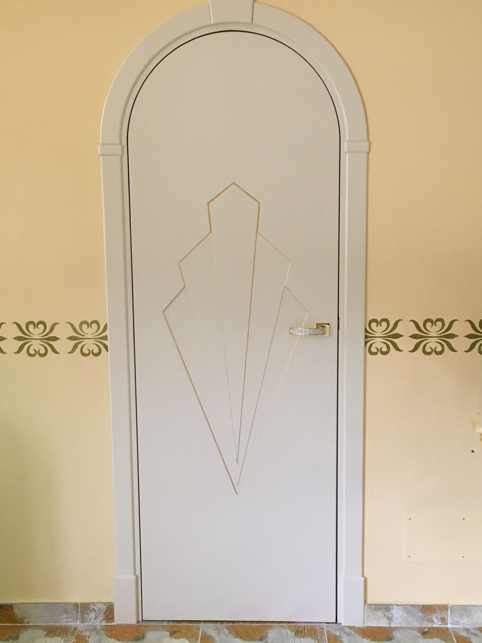 - porte interne con particolari intarsi a rilievo e vetrate artistiche su disegno del cliente;