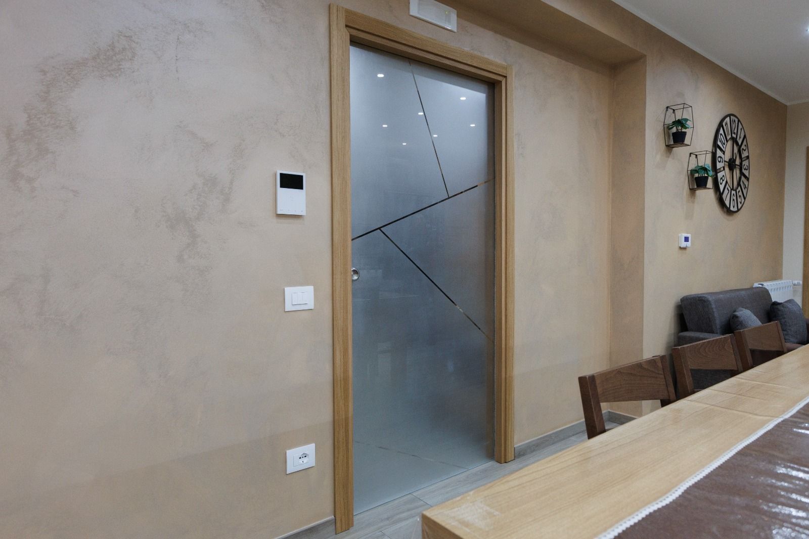 - porte divisorie interne con vetrata artistica scorrevole con sistema scrigno;
